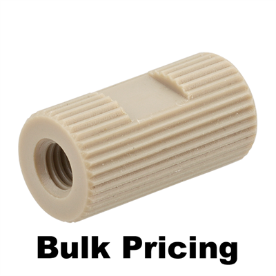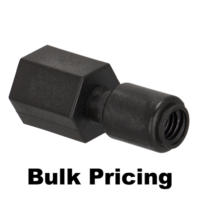 Adapter, for use with low pressure HPLC. Female luer thread style with 5/16 inch Hex to 1/4-28 UNF bottom sealing thread. White nylon ARE-Applied Research brand. Bulk Price.