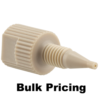 Adapter, for use with low to medium pressure HPLC. Waters female to 10-32 male connection, 0.40 mm / 0.016 bore size. Natural PEEK. ARE-Applied Research brand. Bulk Price.