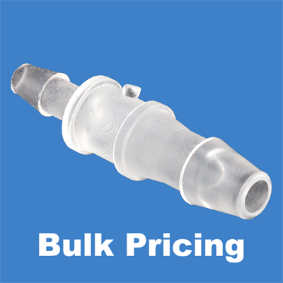Adapter, for use with low pressure. Barbed connection for 3/32 inch to 1/8 inch tubing. Polypropylene. ARE-Applied Research brand. Bulk Price.