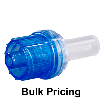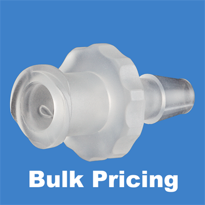 Check Valve, luer, pocket for 0.122-inch (3.1 mm) OD tubing to male locking luer. Clear-Transparent MABS and Blue-Transparent SAN with Silicone Diaphragm. Bulk Price.