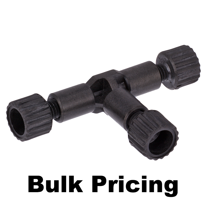 Union, Connector Kits, Tee, high pressure, 0.50 mm / 0.020 through hole with 10-32 screw threads. Carbon PEEK Endure, with connector nuts. Use with 1/16 tubing. ARE-Applied Research brand. Bulk Price.
