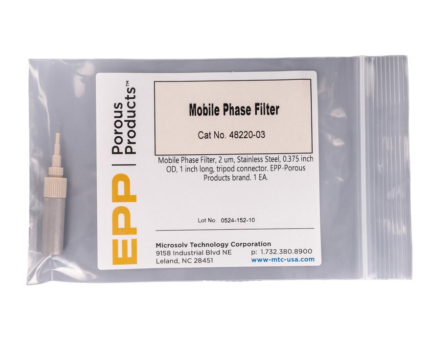 Mobile Phase Filter, 2 um, Stainless Steel, 0.375 inch OD, 1 inch long, tripod connector. EPP-Porous Products brand. Bulk Price.