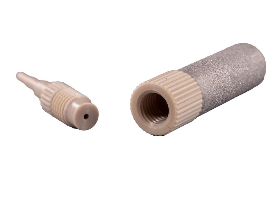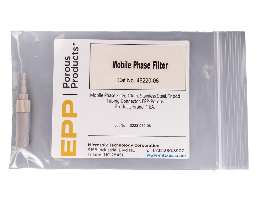 Mobile Phase Filter, 10 um, Stainless Steel, 0.375 inch OD, 1 inch long, tripod connector. EPP-Porous Products brand. Bulk Price.