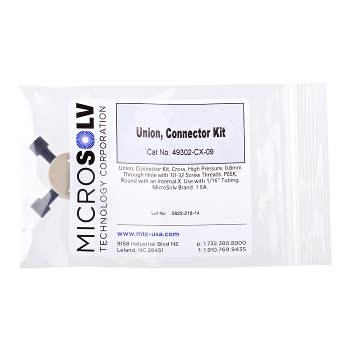 This "Union" is used to connect PEEK or stainless steel tubing the same connectors on all ends in the high pressures zones of HPLC systems. A "Cross (X)" internal flow pattern is often used to split flow into two or three directions or to combine two or three streams into one.