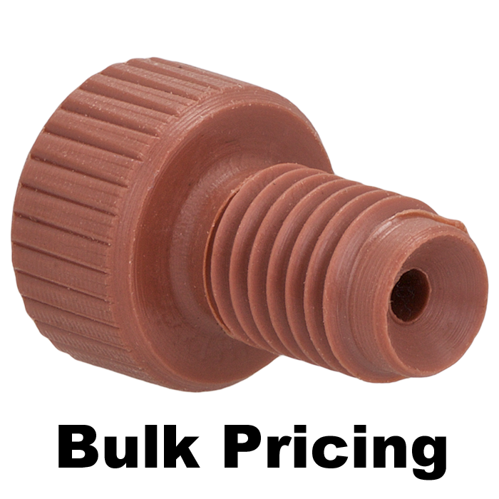 These tubing connector nuts are used to connect 1/16th inch (1.6 mm) OD polymeric tubing in the low pressures zones of HPLC systems and other low pressure, fluidic uses.