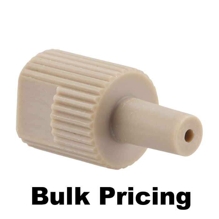 Adapter, for use with low to medium pressure HPLC. 10-32 female to male luer connection, 1.3 mm / 0.051 bore size. PEEK. ARE-Applied Research brand. Bulk Price.