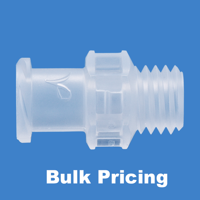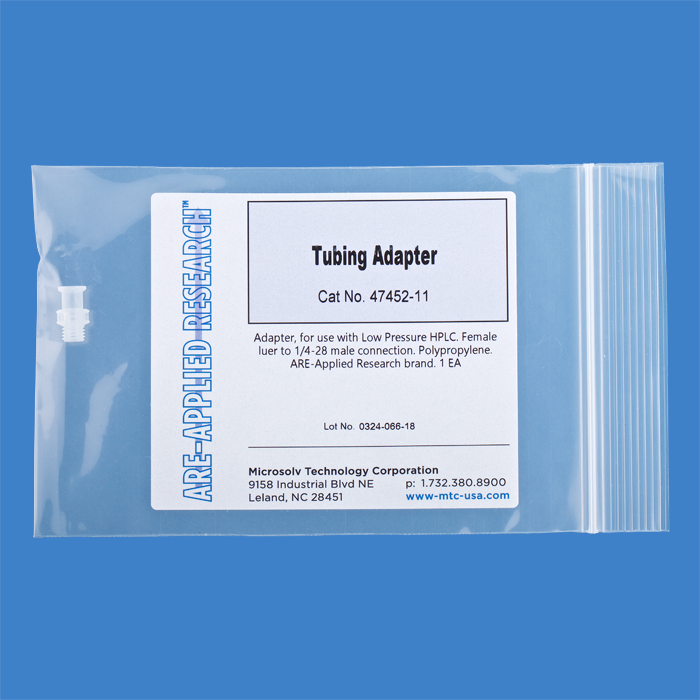 Adapter, for use with low pressure HPLC. Female luer to 1/4-28 male connection. Polypropylene. ARE-Applied Research brand. Bulk Price.