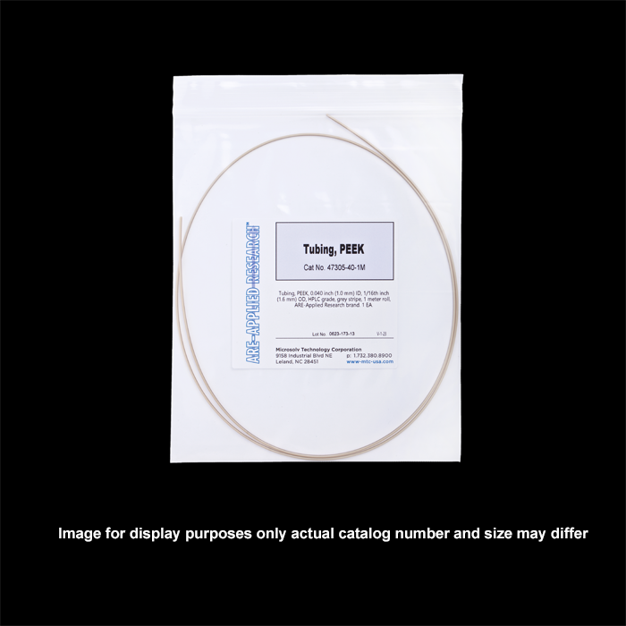 Tubing, PEEK, 0.040 inch (1.0 mm) ID, 1/16th inch (1.6 mm) OD, HPLC grade, grey stripe, Your custom continuous length tubing, priced per meter. ARE-Applied Research brand.