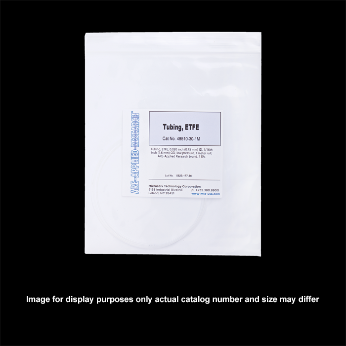 Tubing, ETFE, 0.030 inch (0.75 mm) ID, 1/16th inch (1.6 mm) OD, low pressure, Your continuous length tubing, priced per meter. ARE-Applied Research brand.