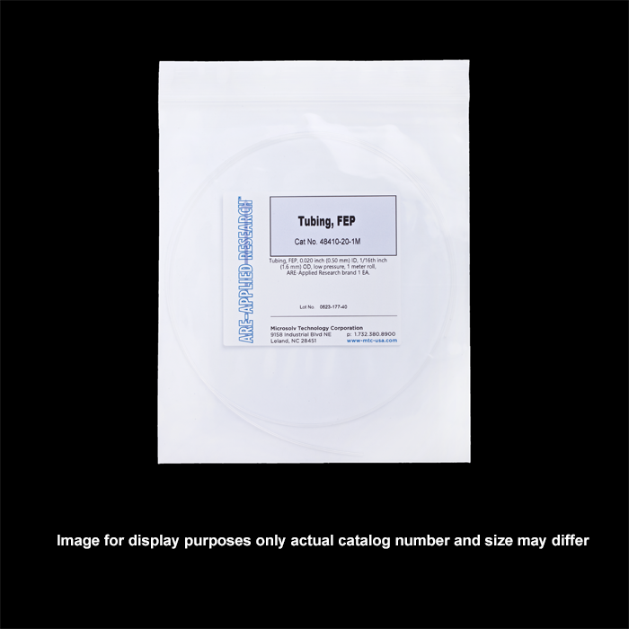 Tubing, FEP, 0.020 inch (0.50 mm) ID, 1/16th inch (1.6 mm) OD, low pressure, Your continuous length tubing, priced per meter. ARE-Applied Research brand.