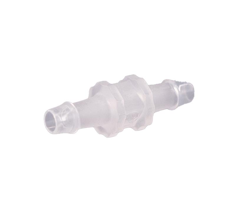 This adapter has a hose barb for 3/32 inch (2.4 mm) ID tubing on both sides. Bulk packaging.