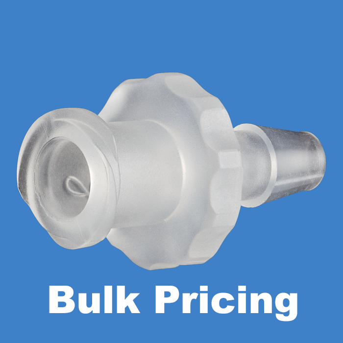 This adapter has a female Luer Lock port on one side and a hose barb connector on the other side for 1/8th inch (3.2 mm) ID tubing. Bulk packaging.