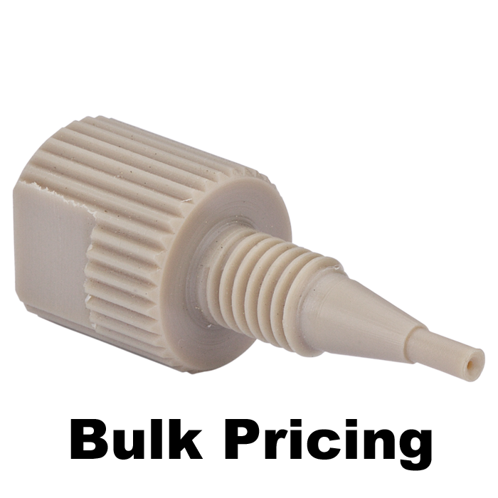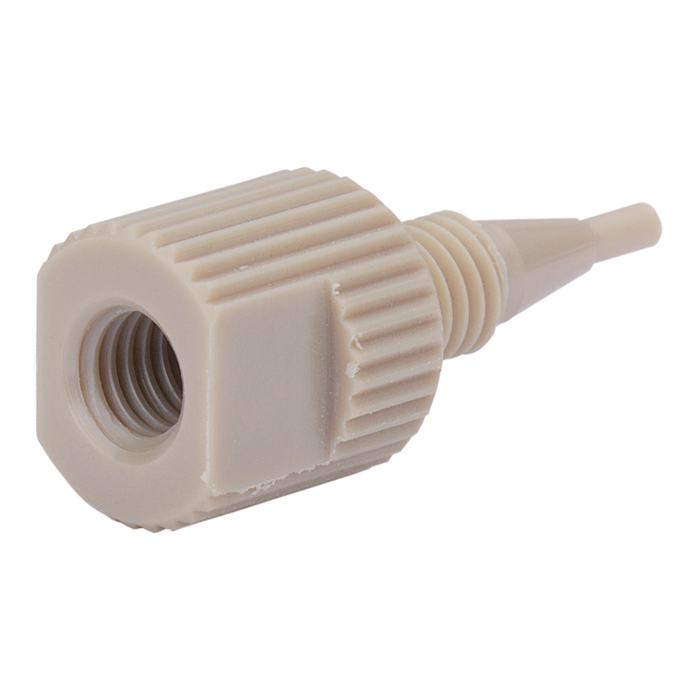 This all-PEEK adapter is very useful when using Waters® HPLC instruments or columns. One side has a 10-32, Waters style female screw threaded port, and the other side has a 10-32, Waters style screw threaded male connector. Click HERE for the differences between Waters and standard connectors.