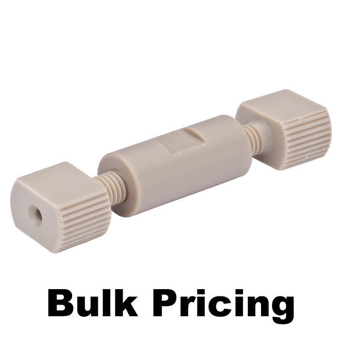 This all-PEEK set of one union and two finger tight fittings, with built in ferrules and standard pilot lengths, allow you to connect two pieces of low pressure, 1/16th tubing in a straight line.