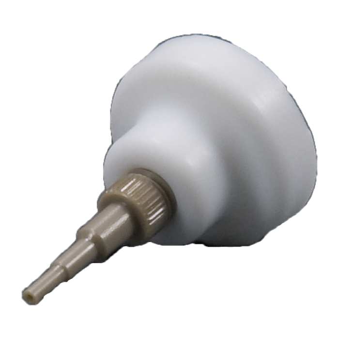 The all PEEK, tripod tubing connector allows for the inlet tubing of the mobile phase delivery system to slip over it with 1/16" or 1/8" low pressure tubing. No ferrules or nuts are required to apply tubing.