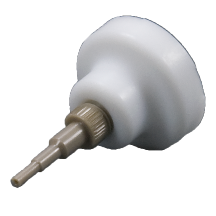The all PEEK, tripod tubing connector allows for the inlet tubing of the mobile phase delivery system to slip over it with 1/16" or 1/8" low pressure tubing. No ferrules or nuts are required to apply tubing.