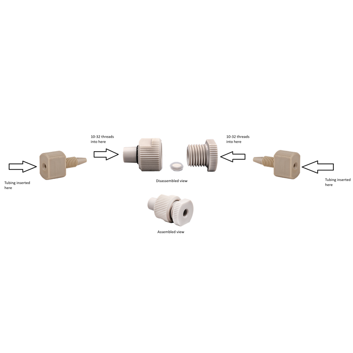 Inline Filter, for HPLC, female connection, replaceable 0.188 inch PEEK filter elements and All-PEEK body. Includes 10 disposable 2 um PEEK filters. ARE-Applied Research brand. Bulk Price.