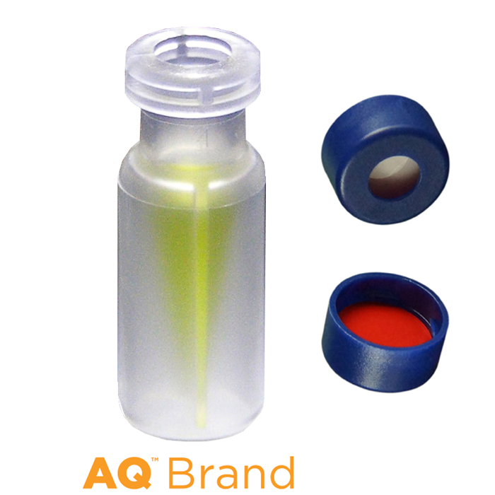 Vial & Cap Kit Includes 100 EA 300 ul, Snap top, clear polypropylene LCMS compatible autosampler vials and 100 EA matching snap caps with white silicone rubber / red PTFE Soft-Guard septa, fitted in the blue caps. AQ Brand Easy Purchase Pack. 1/PK.